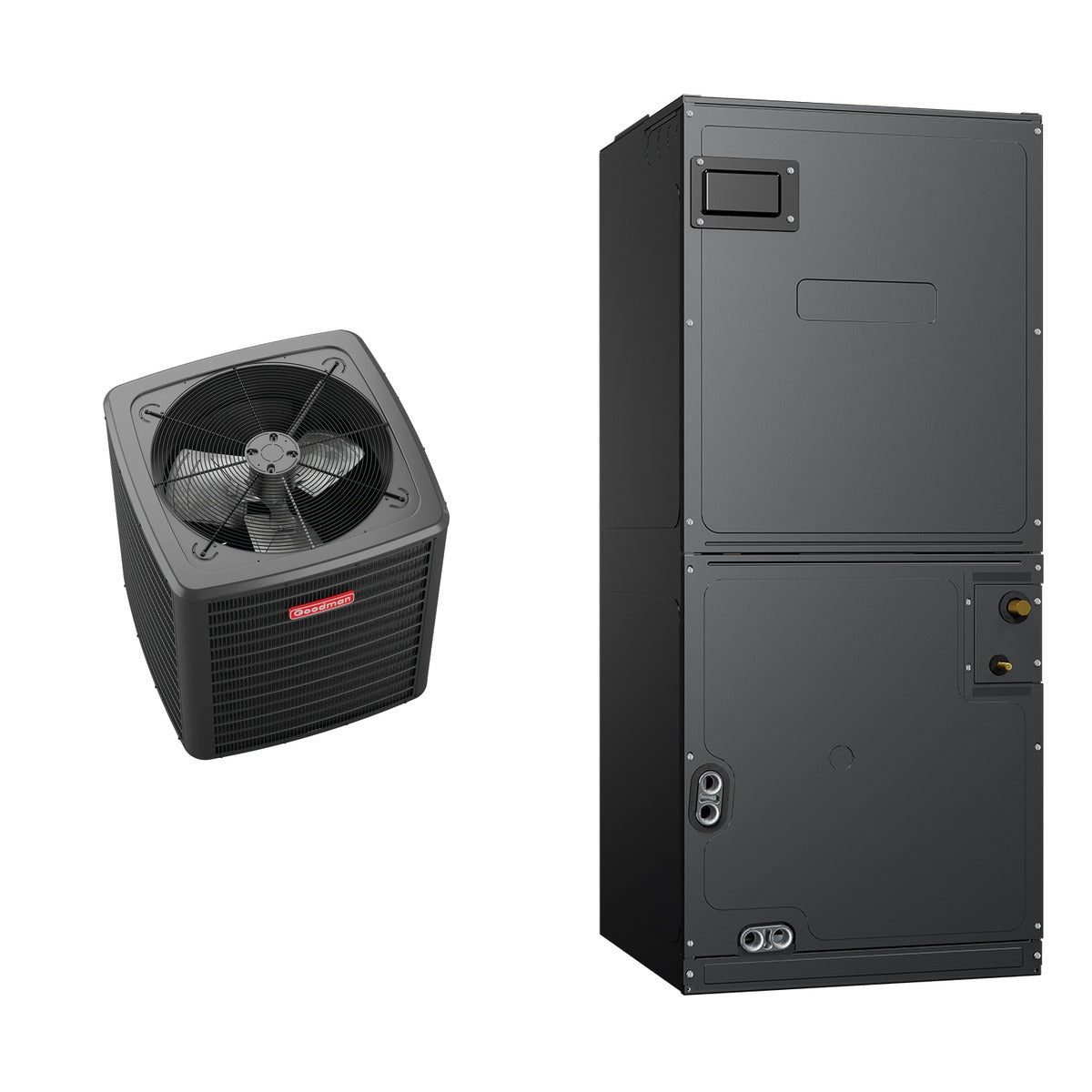 This bundle includes two high-performance GOODMAN HVAC components designed to work seamlessly together for optimal indoor climate control. The GOODMAN GLXS4BA4810 Split Air Conditioner offers efficient cooling with a capacity of 48,000 BTU and a high SEER2 rating of 14.3, making it perfect for residential applications.