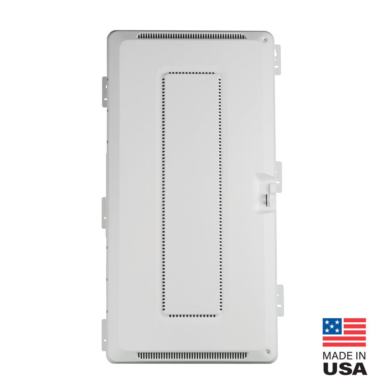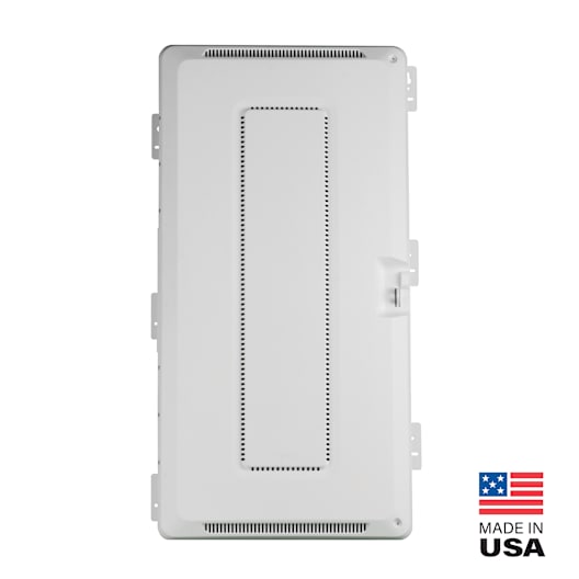 The ONQ ENP3050NA is a thirty-inch plastic media enclosure suitable for both flush and surface mounting. Made from ABS plastic, it supports wireless signals without any interference. The enclosure features a reversible hinged door that swings up to one hundred eighty degrees and is lockable.