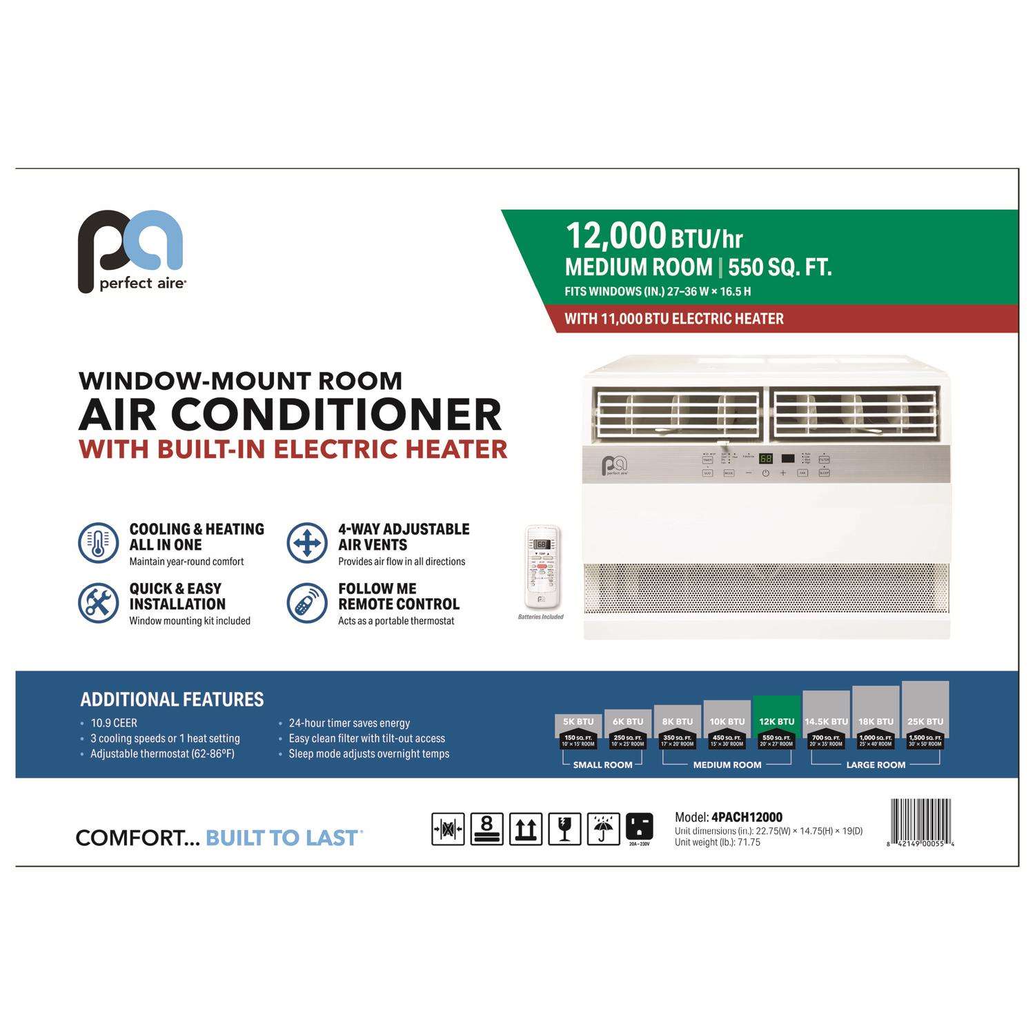 Perfect Aire 4PACH12000 12,000 BTU Cool/Heat Window Air Conditioner with 11,000 BTU Electric Heat